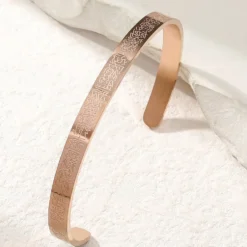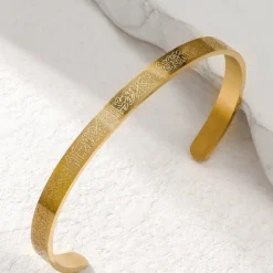 Exprimez votre foi avec élégance grâce à ce magnifique bracelet gravé Ayatoul Koursiyu en acier inoxydable. Inspiré par une des plus puissantes sourates du Coran, ce bijou islamique est à la fois un symbole spirituel et un accessoire tendance.